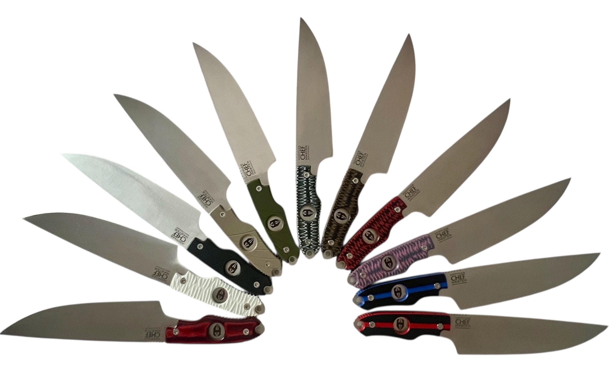 Choose from eleven stunning, ergonomic G10 handles in your preferred texture — Flatline or Chiseled. Each is meticulously designed with strategic grip control notches, finger/thumb indentations for a secure pinch-grip, and index divots for seamless grip transitions. The result is total control, comfort, and safety, even during the longest prep sessions.